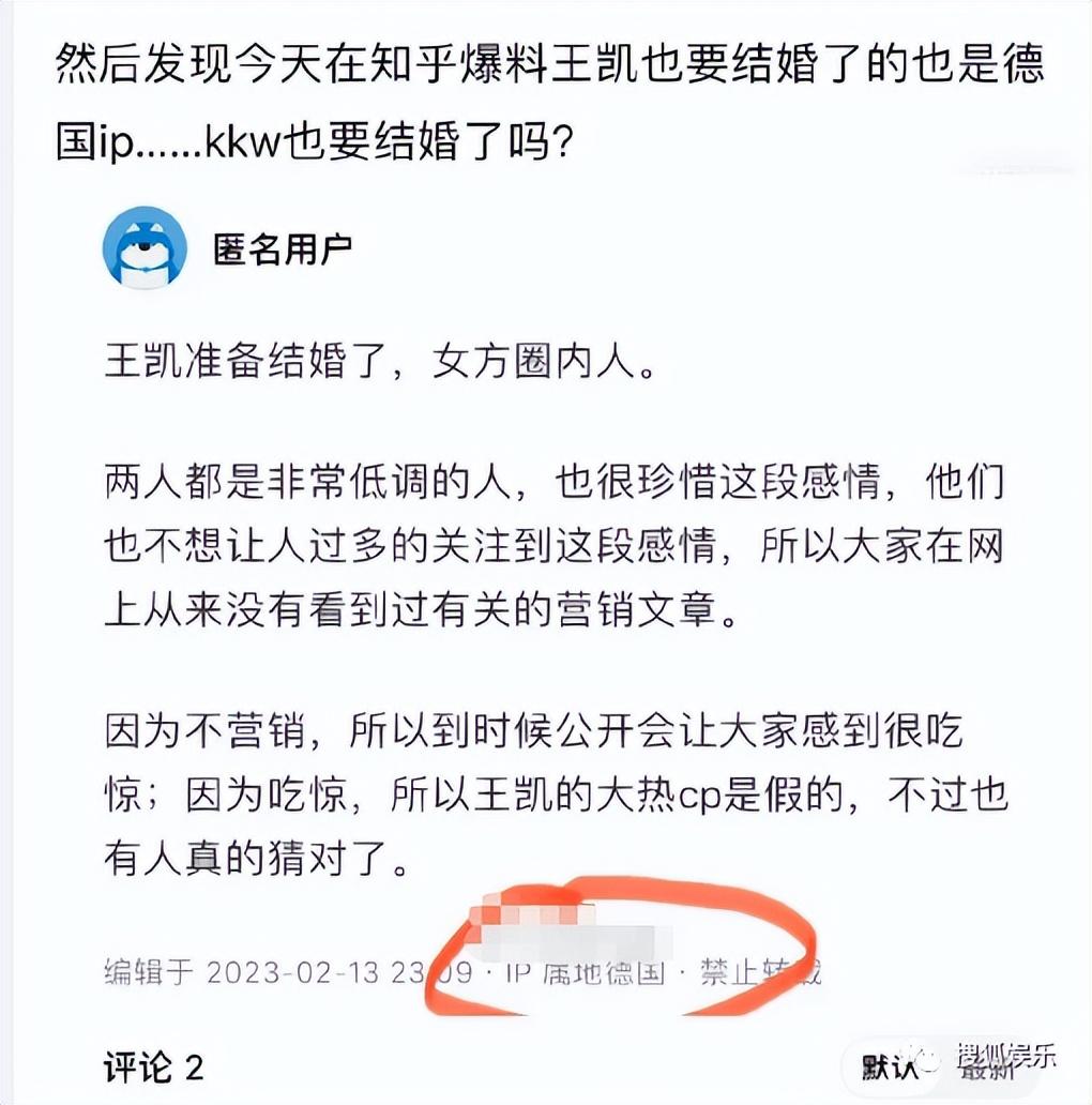 就是这位“大神”在昨天爆料,说王凯也要准备结婚了,女方是圈内人。两人非常低调,很珍惜这段感情。