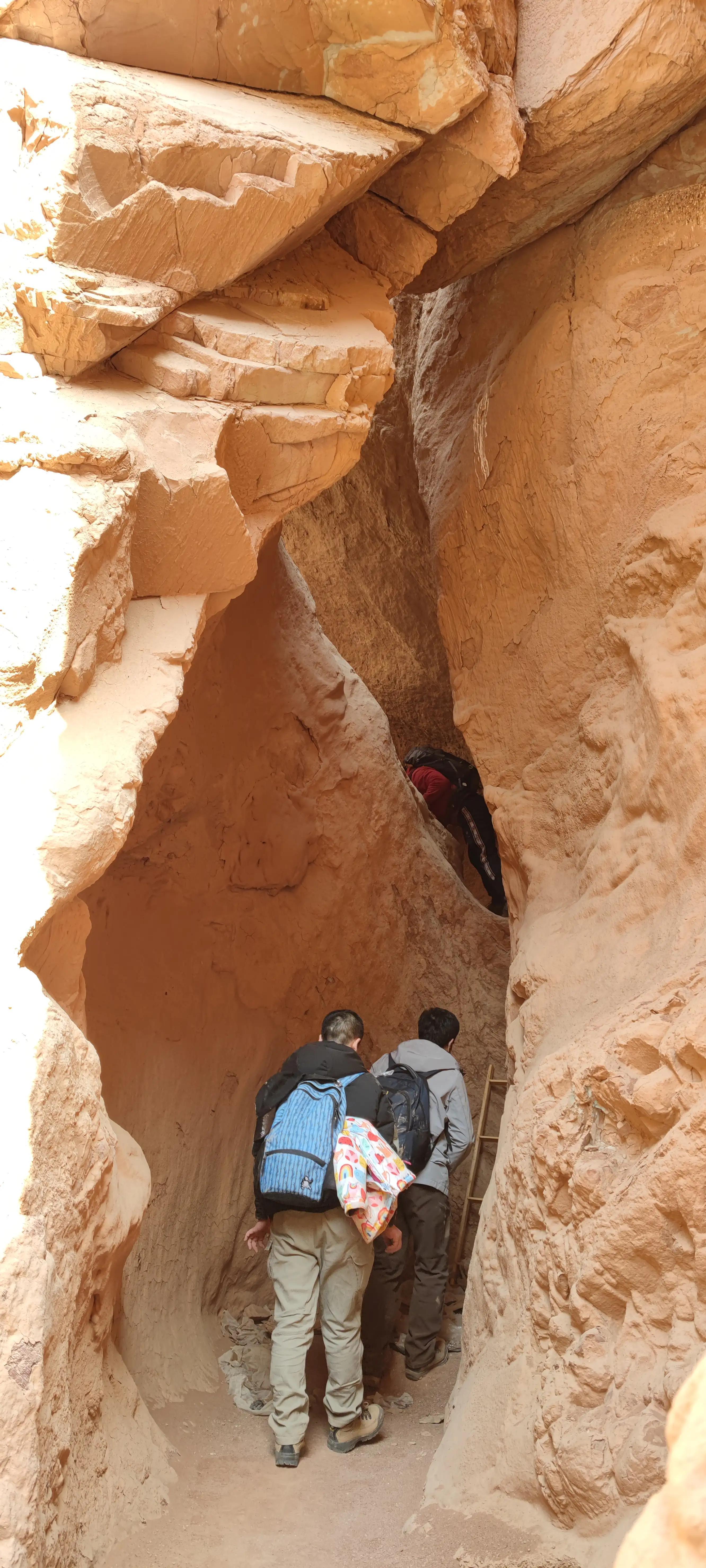 还有木梯,钻过山崖缝隙
